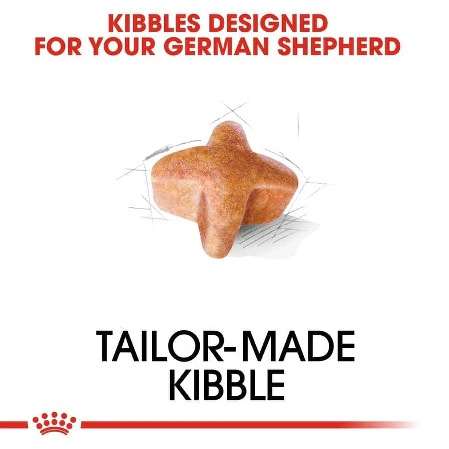 - Exclusive kibble design : The kibble’s shape, size, texture and formula are adapted to the German Shepherd dog.