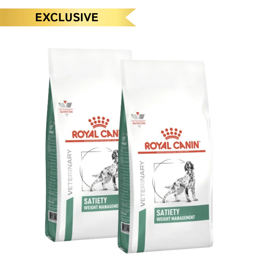 ROYAL CANIN® SATIETY WEIGHT MANAGEMENT dry is a complete dietetic feed for dogs formulated to reduce excessive body weight. This feed has a low energy density. RECOMMENDATIONS: Feed SATIETY WEIGHT MANAGEMENT dry until the target body weight is achieved.