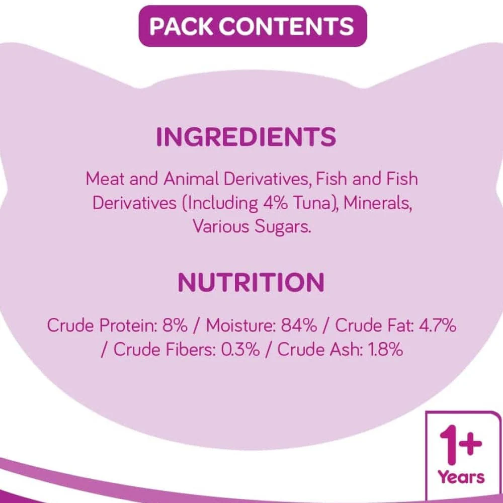 - A cat’s love for fish is thoughtfully blended with loads of calcium, phosphorus, proteins, antioxidants, vitamins and minerals, in each pack.